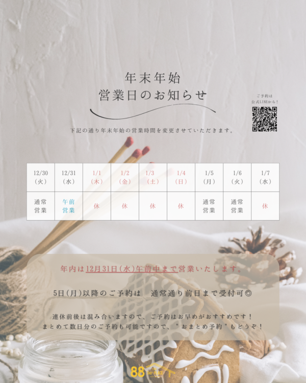 「今年のうちに整えておきたい」方はお早めのご予約がおすすめです✨